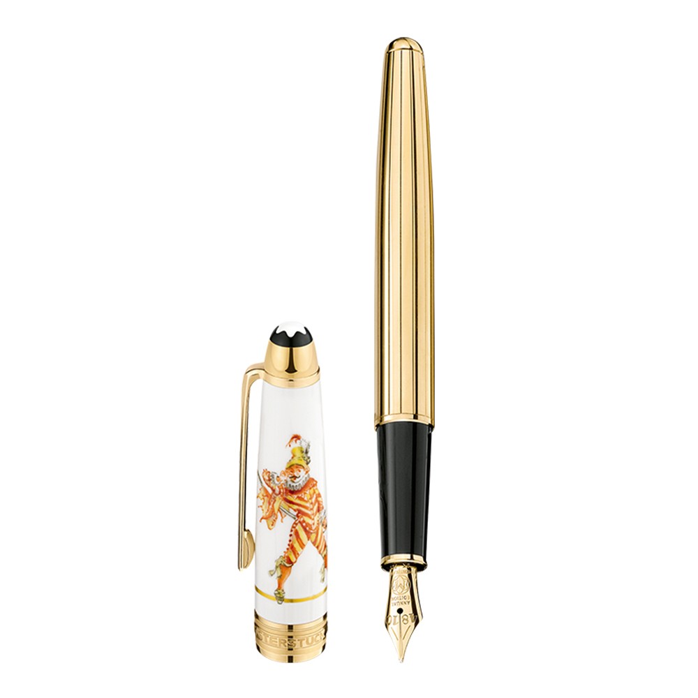 | Overall Design | Painted in a historic style and with the finest brush stroke, the annual motif has been immortalized on the cap made of finest Meissen porcelain. The edition is made complete by the gold coated body with its fine guilloche and the crossed blue swords of the Meissen porcelain manufacture painted on the cap. |