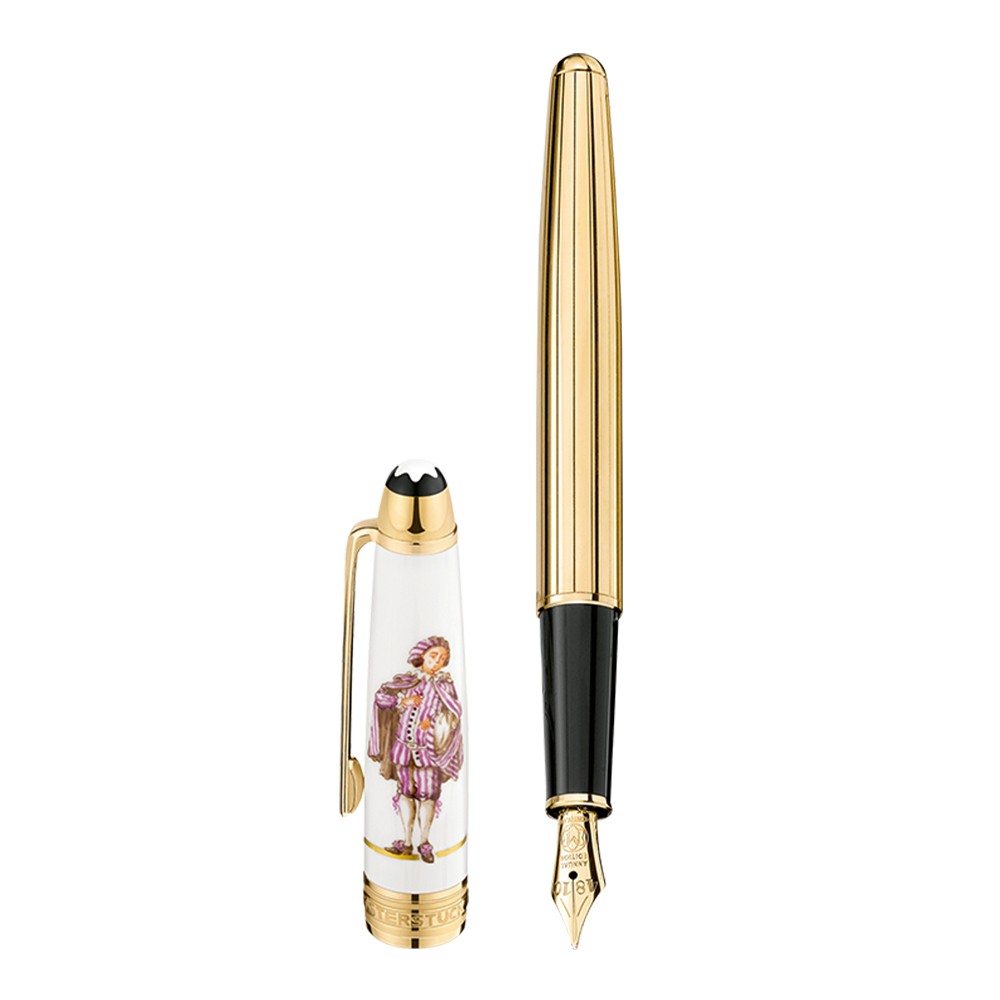 | Overall Design | Painted in a historic style and with the finest brush stroke, the annual motif has been immortalized on the cap made of finest Meissen porcelain. The edition is made complete by the gold coated body with its fine guilloche and the crossed blue swords of the Meissen porcelain manufacture painted on the cap. |