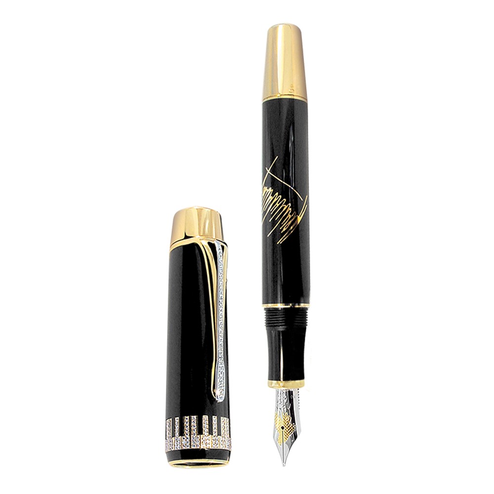 | Overall Design | The edition is made of Au750 solid yellow gold. The piano keyboard, set with diamonds, is the main element and reference to his work and life achievements. The barrel is enriched by his signature on black precious lacquer. |