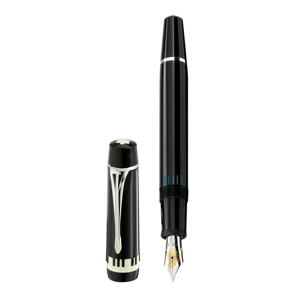 Overall Design Made of black precious resin and the faceted ivory colored ring on the cap representing a keyboard, the design recalls the early career of the musician, who first became famous as a brilliant pianist in Vienna. As e memento of Karajan, the edition is accompanied by a pure silk scarf.