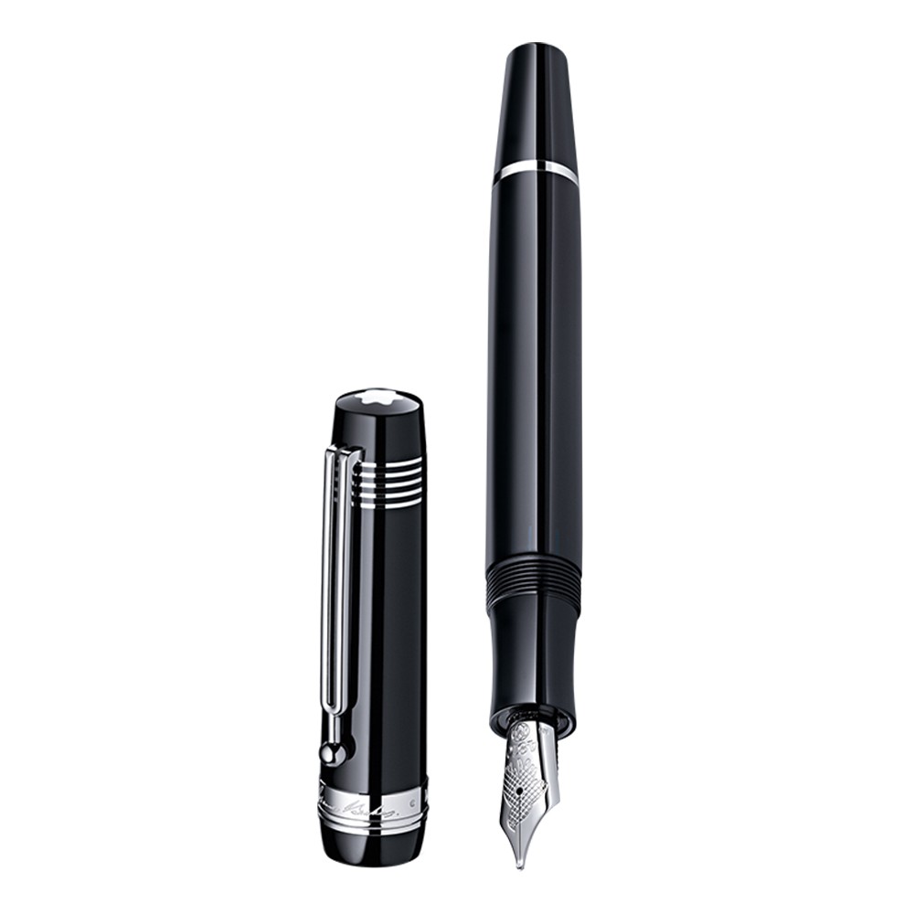 | Cap | Black precious resin with five platinum coated lines referring to a piano staff embellishing the cap. The cap ring is decorated with Johannes Brahms's signature and the Montblanc emblem. |