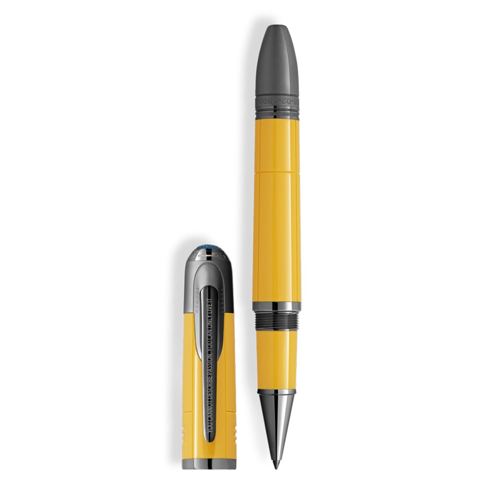 enormous vision and an unbridled passion for motor sport, Enzo Ferrari led his company to unparalleled prestige and created a legend that lives on. Montblanc has dedicated the Montblanc Great Characters Enzo Ferrari Special Edition to the man and his passion for racing. Drawing inspiration from both the crest of Enzo Ferrari´s hometown Modena as well as the emblematic colour of the Scuderia´s logo, this edition honours Ferrari´s second soul – the colour yellow. The dates of Enzo Ferrari’s birth and his first racing victory are engraved on the cone, while his signature and the name of his father’s workshop, ‘Officina Meccanica Alfredo Ferrari’, in reference to Enzo Ferrari’s birthplace, are engraved on the cap top. It is crowned by the Montblanc emblem made of precious resin in blue – as a further tribute to the crest of Modena – and surrounded by intricate metalwork reminiscent of a vintage car grill. Enzo Ferrari’s first victory, at the Circuito del Savio, was also the occasion marking the beginning of the now famous Ferrari logo. Among the many spectators who admired Enzo Ferrari’s bold driving that day was the family of the ace pilot Francesco Baracca, who had served during World War I in the same unit as Enzo’s brother Dino. Francesco Baracca’s mother, Countess Paolina Biancoli, suggested that Enzo Ferrari should use the emblem of a prancing, unbridled horse from her son’s plane on his racing cars for good luck. The horse’s association with a national hero’s courage and will to dominate made it an ideal symbol for Enzo. Nine years later, the Cavallino Rampante was first used on a yellow background to adorn a car. It was 1932 at Spa 24 Hours, and the Scuderia Ferrari team took 1st and 2nd place with two cars bearing the Prancing Horse. The Cavallino Rampante is engraved on the cap of the Montblanc Great Characters Enzo Ferrari Special Edition together with the words of the countess: ‘Le porterà fortuna’ (‘It will bring you luck’). The first car made by Ferrari, the 125 S, with twelve cylinders, left the factory in Maranello on 12 March 1947. Twelve engraved lines symbolise the twelve cylinders. Enzo Ferrari’s motto, ‘You cannot describe passion, you can only live it’, decorates the ruthenium-coated clip.