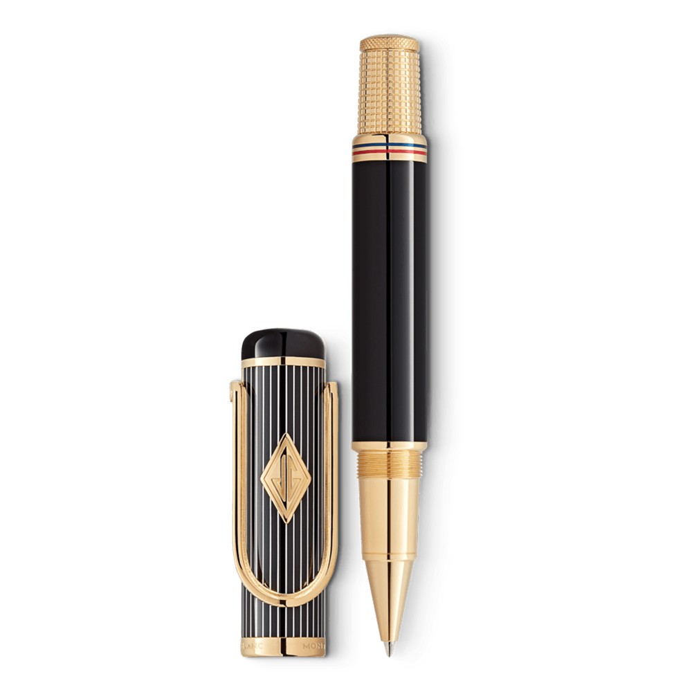 Certain novels go down in literary history and, at the same time, come to symbolize an entire epoch. F. Scott Fitzgerald’s ‘The Great Gatsby’ is one such gem of modern American literature. Published in 1925, the novel paints a fascinating picture of the Jazz Age and the Roaring Twenties, a time of unprecedented affluence and self-indulgence. Pulsating New York City, the opulent mansions of Long Island and the dazzling high society parties are the backdrop to the story of Jay Gatsby, a mysterious millionaire, who will stop at nothing to regain the affections of the lost love of his youth, Daisy Buchanan. The chosen style of the era’s elite became a fashion classic for successful businessmen – and the inspiration behind this writing instrument. The pinstriped design of the cap made of precious black and white lacquer harmonizes with the barrel finished in precious black lacquer. The apparent power of money is symbolized in the edition by the platinum-coated clip which takes the form of a money clip. Its rounded opening is resplendent with the initials of Jay Gatsby as a rhomboidal gold colored Art Deco monogram. The myth of the American dream and the design of the often stylish hip flasks of the Art Deco period are referenced by the cone which imitates the engraved screw cap of a flask and the fine rings in the colors of the American flag encircling it. The crowning Montblanc emblem is made of mother-of-pearl, a material whose iridescent colors and shimmering glow inspired some of the most elegant creations by jewelry designers of the Art Deco period.