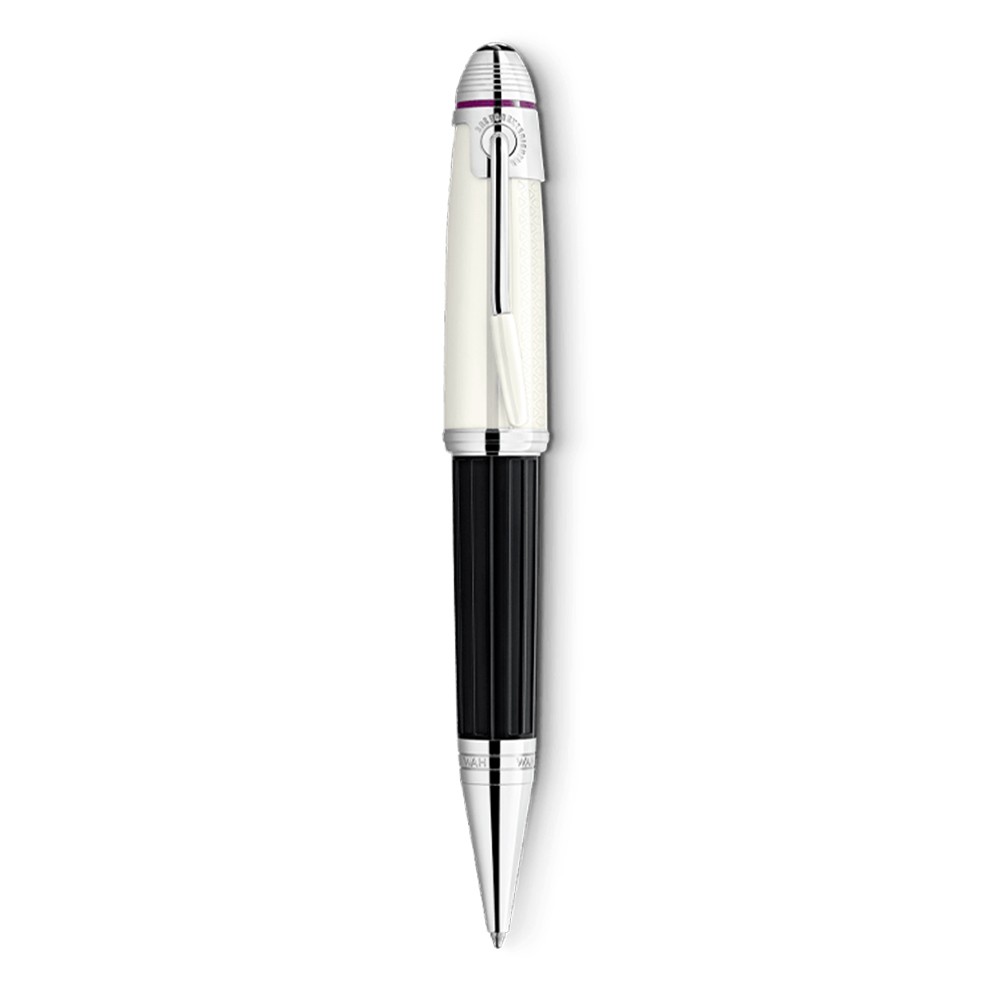 In 2022, Montblanc honors one of the most celebrated musicians of the 20th century who is widely regarded as one of the most influential electric guitarists in the history of popular music: Jimi Hendrix. Made from precious resin, the off-white color of the cap and its engraved pattern is inspired by one of the guitar straps worn by Hendrix, while the black barrel features an elegant pattern resembling a WAH pedal. The platinum-coated clip is angled to resemble the vibrato bar of an electric guitar. The Montblanc emblem on the cap top is made from precious resin.