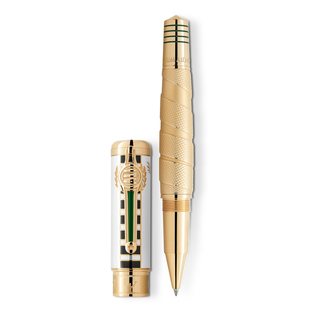 Only few athletes are celebrated and honored as three-time Heavyweight Champion of the world, Muhammad Ali, whose legendary moments in sports and civil rights activism made him one of the most influential athletes and humanitarians of the 20th century. As an athlete, Ali shook up the world with his strength, skill, and personality, becoming Heavyweight Champion of the world at just 22 years old. His greatest results triumph, however, resulted from his humanitarian efforts. Inspired by the robe Ali wore when entering the legendary fight in Kinshasa, Zaire, in 1974, the precious lacquer on the cap represents this distinct pattern while the pattern on the gold-coated barrel resembles boxing tapes athletes use for wrapping their hands. The gold-coated butterfly on the cap is inspired by this typical fighting style: Float like a Butterfly, sting like a bee . The pointed cone takes up that notion and the four lacquered lines resemble the ropes of a boxing ring. The inscriptions on the cone refer to Ali´s victory at the 1974 fight nicknamed Rumble in the Jungle , when Ali won his second heavyweight world championship. The details of his victory, namely having won in the eighth round by technical knock-out, can be found on the cap ring. The cone also bears reference to a famous of Ali in 1975, nicknamed Thrilla in Manila . To celebrate his second title, the Montblanc emblem in White precious resin is adorned with a 2 . To underline this success, the clip is shaped like a boxing championship belt and bears his name.