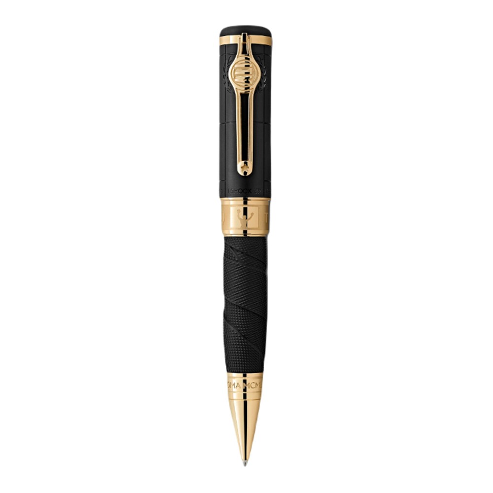 Only few athletes are celebrated and honored as three-time Heavyweight Champion of the world, Muhammad Ali, whose legendary moments in sports and civil rights activism made him one of the most influential athletes and humanitarians of the 20th century. As an athlete, Ali shook up the world with his strength, skill, and personality, becoming Heavyweight Champion of the world at just 22 years old. His greatest results triumph, however, resulted from his humanitarian efforts. Crafted from precious Black resin, the cap resembles a boxing sack while the barrel appears like boxing tape athletes use to wrap their hands. The cap features various design elements, such as a famous exclamation by Ali and a butterfly inspired by this typical fighting style: Float like a Butterfly, sting like a bee . The pointed cone takes up that notion and is engraved with four lines representing the ropes of a boxing ring. The inscriptions on the ballpoint tip refer to Ali´s victory at the 1960 Olympic Games in Rome and his first heavyweight world championship he won in Miami in 1964. The details of his victory, namely having won in the seventh round by technical knock-out, can be found on the cap ring. To celebrate his first title, the Montblanc emblem in White resin is adorned with a 1 . To underline this success, the clip is shaped like a boxing championship belt and bears his name.