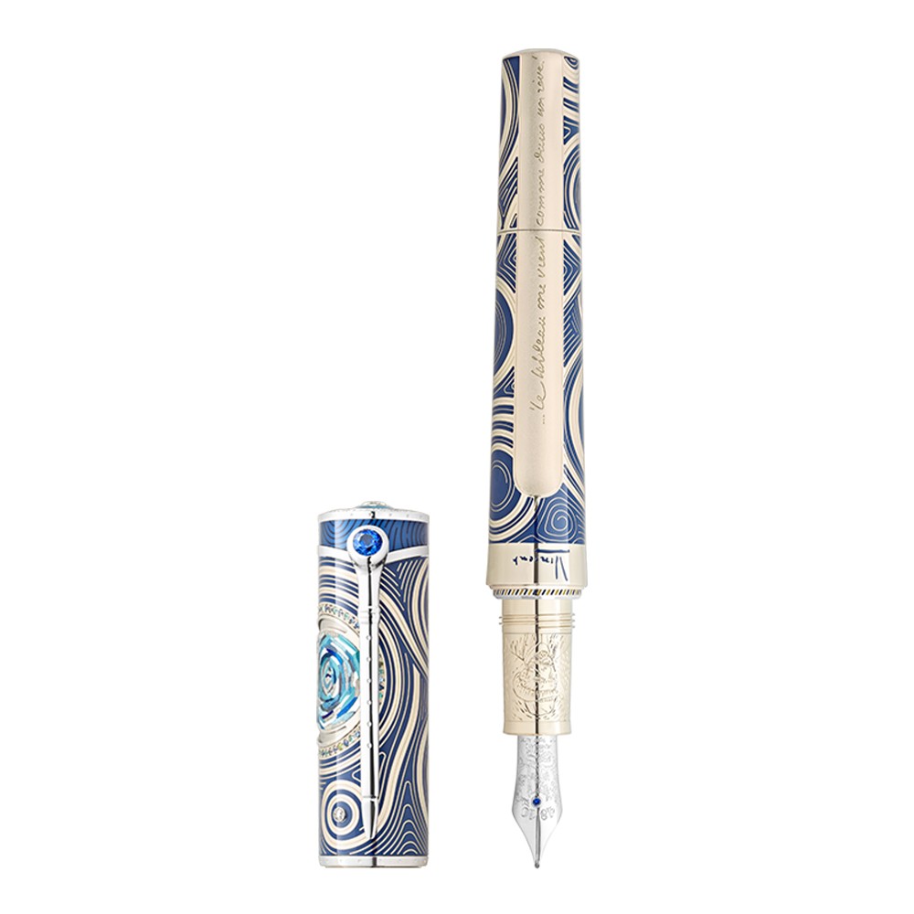 With the Montblanc Masters of Art Homage to Vincent van Gogh Limited Edition 8, Montblanc celebrates Vincent van Gogh, one of the most popular painters of the late 19th century. This edition especially emphasizes his time in Saint-Rémy and Auvers-sur-Oise with design details reflecting the breath-taking blue skies and swirling brush style that make “Wheatfield with Crows” so powerful. “Wheatfield with Crows” depicts a deep blue sky contrasting with the bright yellow of a wheat field dotted with black birds. The jewel-like quality of this sky is captured in the blue lacquer artwork on the solid Au 750 signature gold cap and barrel, which is partly set with brilliant-cut diamonds and enhanced with swirling engravings that echo the sweeping movements of Vincent’s brush over the canvas. The sky imagery continues on the cap top, where a hand-painted field of intense blue lacquer edged with brilliant-cut diamonds frames the Montblanc diamond at the center in a solid Au 750 signature gold setting. In an homage to Van Gogh’s love of natural landscapes, the cap features an elaborate handcrafted marquetry design inlaid onto solid Au 750 white gold, rhodium-coated and composed of tiny pieces of mother-of-pearl, sycamore, tulip tree, beetle elytra and straw – a nod to Vincent’s golden wheat fields. Sapphires, Paraiba tourmalines and brilliant-cut diamonds set around the marquetry inlay intensify its vividness. His signature, ‘Vincent’, engraved and filled with blue lacquer, adorns the barrel ring below the portrait. Vincent van Gogh created over 200 paintings in southern France, developing a looser, freer style and becoming equally competent with brush and palette knife – which he used to create a chunky, impetuous “impasto” style. His palette knife inspired the rhodium-coated clip, while his sweeping brushwork is immortalized in the blue lacquer of the cap top. Furthermore, his fondness for pipe smoking, to which he referred in many of his self-portraits, is captured in a subtle detail of the clip: the upper part is shaped like a pipe’s bowl and is adorned with a blue sapphire. One of his portraits, “Self Portrait with Straw Hat”, is the inspiration for the engraving on the forepart. The image embossed on the Au 750 solid gold nib immortalizes Vincent’s painting “Almond Blossom”. Its Japanese-inspired style can be traced back to a fashionable admiration of Japanese art known at the time as Japonisme. The overall silhouette is shaped like a Japanese woodcutting knife, as a symbol of Van Gogh’s personal fascination with traditional Japanese woodblock prints. Celebrating his ability to find inspiration and transform it into new art, a quote from a letter Vincent wrote to his brother Theo on 25 September, 1888, is hand-engraved on a solid Au 750 signature gold surface depressed into the barrel and cone: …‘le tableau me vient comme dans un rêve.’ (‘The painting comes to me as if in a dream.’). With signature gold and/or signature gold-coating, Montblanc evokes the enlightened shade of yellow gold which has become an appreciated tone for the Maison’s writing instruments.