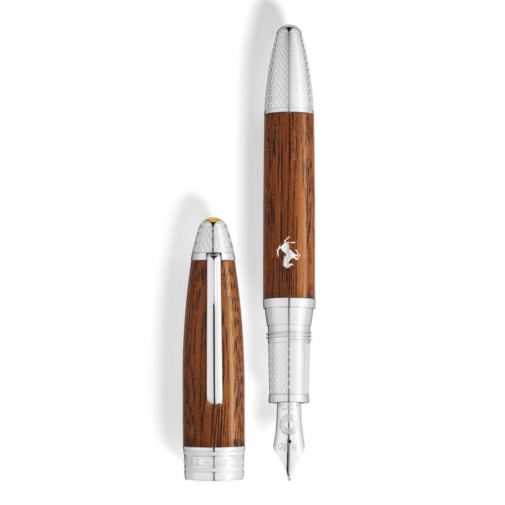 Ferrari's Tailor Made program is structured around three collections: Classica, Inedita and Scuderia. Ferrari customers can then take inspiration from one or more of these collections, adapting the various elements according to their tastes. The Meisterstück Great Masters Ferrari Classica, the first edition to be launched within this program, is inspired by the Classica collection, which gives a modern twist to the styling cues and features of Maranello's iconic GTs. Based on these characteristics, the writing instrument pays tribute to the design of the 250 GTO steering wheel, along with the feeling and dream of holding one. The writing instrument has an Au750 solid gold nib with rhodium coating and a special engraving. The cap top features the Montblanc emblem in yellow resin -a nod to the Ferrari color palette-, while the platinum coated cap top and cone with engraving are reminiscent of the steering wheel's grip; a detail that is also carried over to the forepart. The cap and barrel are made from mahogany wood, enhanced with an elegant black lacquer insert and the Ferrari prancing horse.