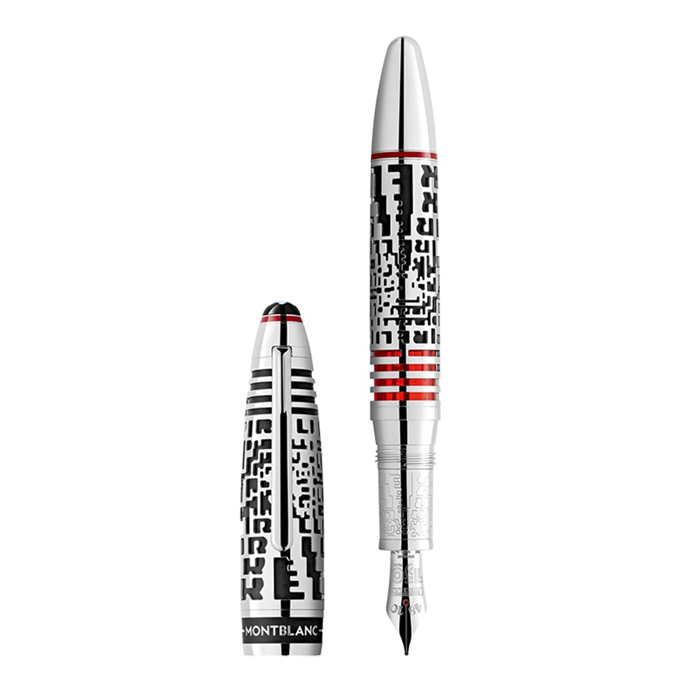The Meisterstück Great Masters Pirelli Limited Edition 72 merges the art of writing with the art of making tires. The collection celebrates the know-how of the Pirelli craftsmen, “sgorbiatori”, who meticulously hand-carve tire patterns; taking days to create just a single prototype. Paying tribute to 150 years of history, a graphic treatment of the Pirelli logo from the archives inspired the 18K solid white gold skeletonized overlay on the cap and barrel – a pattern which continues onto the forepart while the black rubber surface showing through contains small particles of original Pirelli racing tires with real track history. The official logo celebrating 150 years of Pirelli is engraved on the handcrafted 18K solid white gold nib, while crowning the cap top, the Montblanc emblem shimmers in luminous mother-of-pearl.