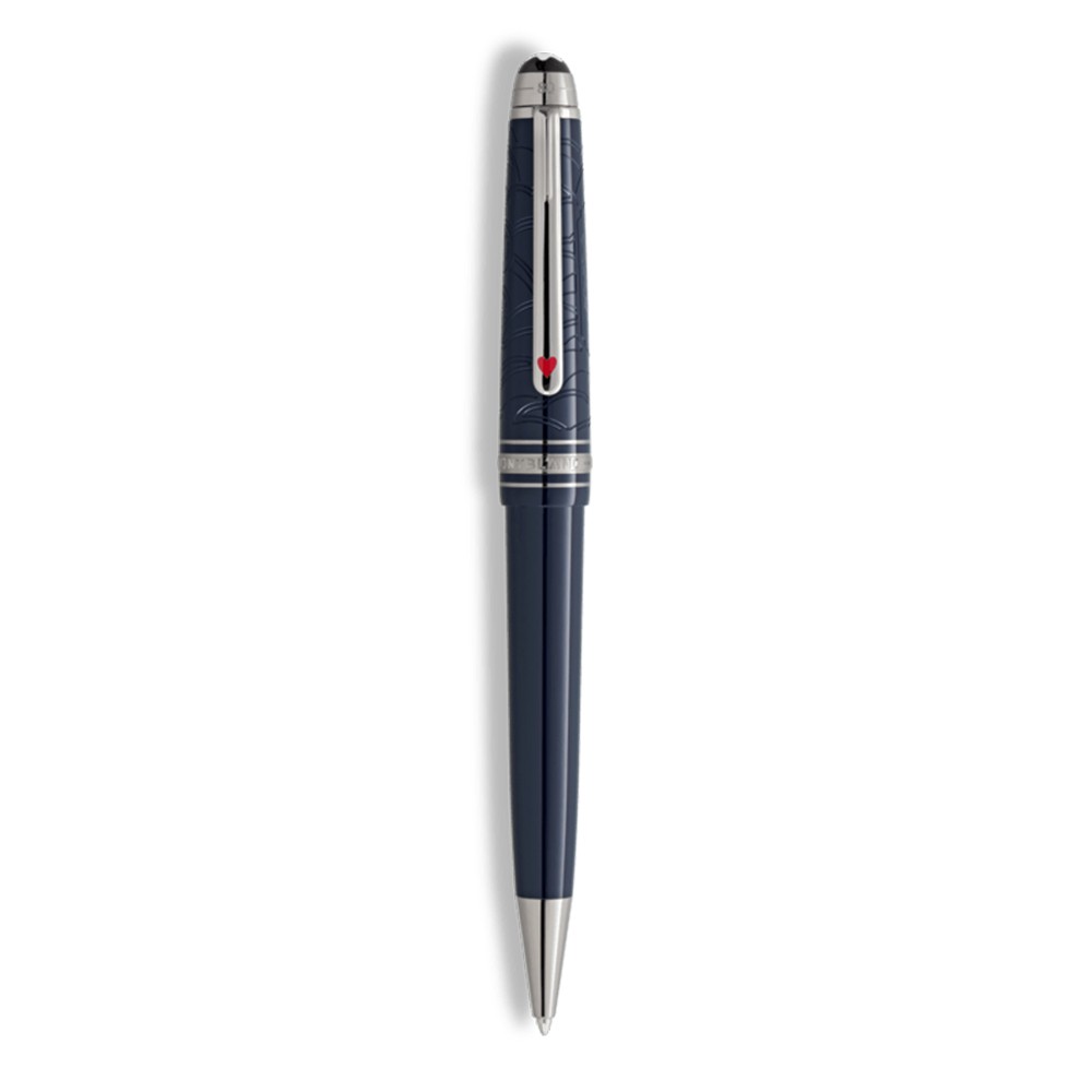 The Meisterstück Around the World in 80 Days collection draws its inspiration from Jules Verne's renowned adventure novel. The Midsize Ballpoint, adorned in dark blue precious resin, recounts the epic journey of Mr. Fogg and Passepartout. Embarking on the final leg from Yokohama back to London via the United States, the duo traverses the vast American continent by train. Delve into the intricate details – a train elegantly lasered on the cap, a safety chain pattern on the cone, mirroring a pivotal moment when Passepartout detaches the train from the locomotive to save the crew who was attacked by Sioux. The cap's design captures pressure valves and the billowing smoke of the locomotive, while the clip boasts a red lacquered heart card suit, symbolizing the union between Phileas Fogg and Princess Aouda. Additionally, card suits represent Fogg's daring wager to complete the journey in a mere 80 days. The cap top bears the embossed timeline of the journey – 36 days from Yokohama to London, culminating in the grand total of 80 days around the world.