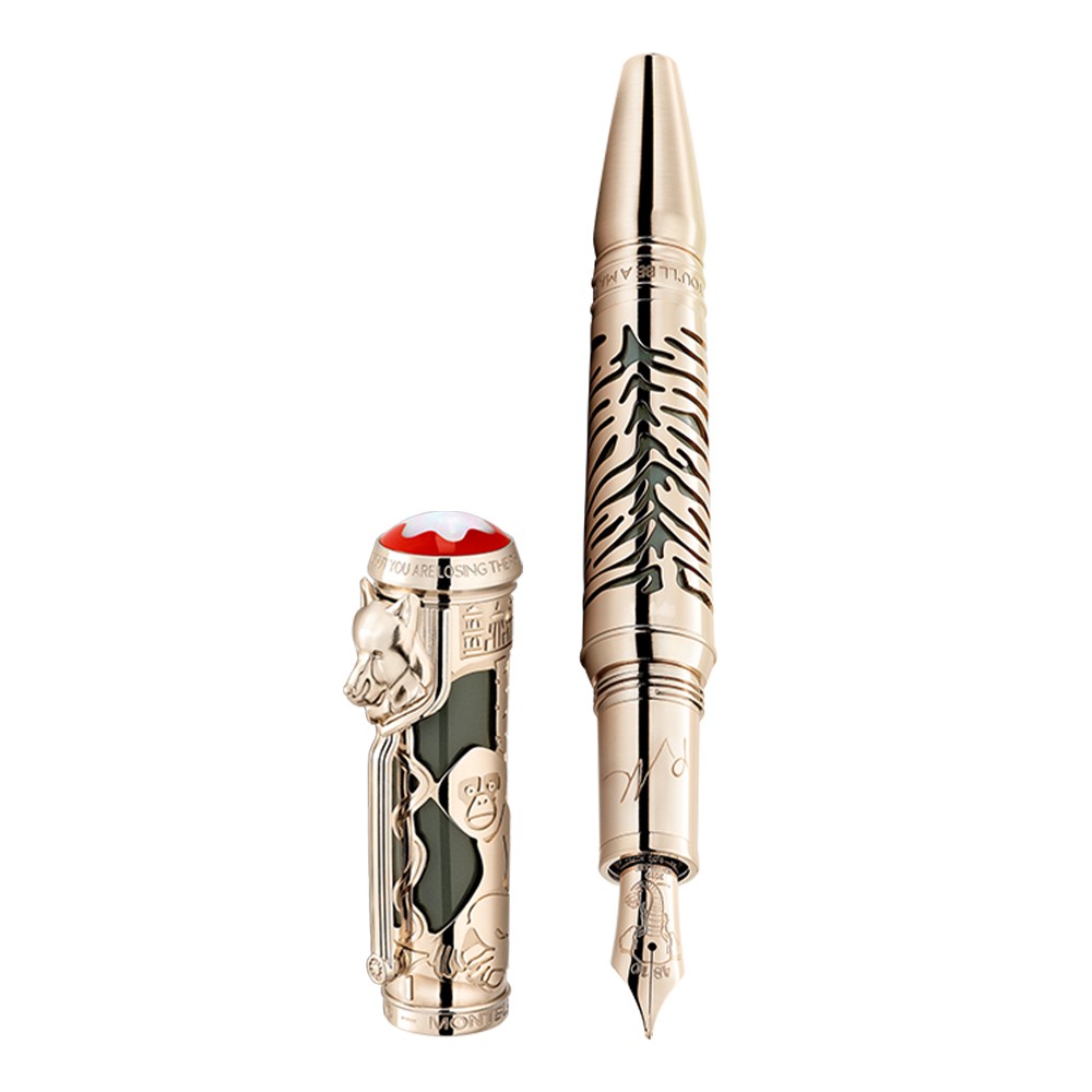 This Writers Edition is inspired by the cover of the "Jungle Book" of Kipling. The craftsmen of Montblanc were inspired by the "Jungle Book" of Kipling for the color of this pen. He combines traditional know-how and innovation, with his staple inspired by the wolf pack. The initials R.K are engraved on it and the craftsmen added "If" ("if") on the top of the cap and the ring of the cone, which represents the beginning and the end of the poem.