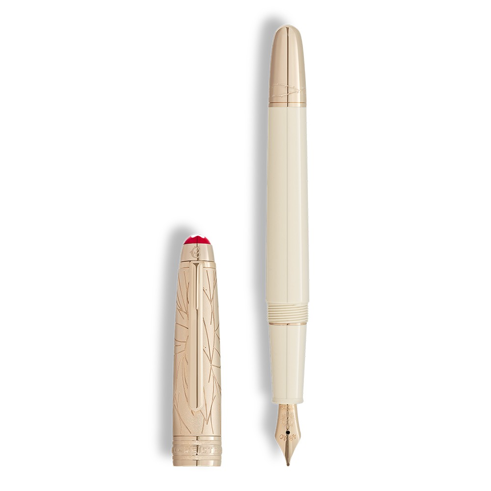 | Cap | Ivory-colored precious resin barrel, with the Montblanc emblem on the cap top embedded in precious coral-colored resin. |
