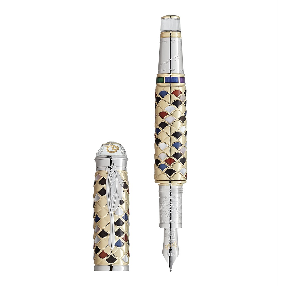 At the centre of the intellectual awakening of the 18th century was one man in particular whose written word has stood the test of time: Johann Wolfgang von Goethe. Polymath, giant of German literature, lawyer, government minister, theatre director as well as prodigious collector and naturalist, he was in every way a revolutionary, intent on pushing back the boundaries of perception and learning. The philosophical depth of Faust, the lyrical subtlety of his poetry and the breadth of scientific exploration behind his colour theory and botanical treatises were of epochal significance and testify in their variety and far-reaching influence to Goethe’s genius. As a poet and statesman, advisor, friend and lover, he left an indelible mark on the world around him and serves to this day as a source of inspiration and vision. With the support of the Klassik Stiftung Weimar and the Goethe National Museum it houses, Montblanc is dedicating its Writers Edition Homage to Johann Wolfgang von Goethe Limited Edition 8 to this universal genius, focusing especially on his achievements as a scientist. The inspiration for the historical silhouette of the edition is taken from Goethe's prized writing instrument with which he committed to paper all his knowledge, insights and the fruits of his seemingly boundless poetic imagination. Writing was his lifeblood. The largest edition of his complete works and writings currently comprises 40 volumes, containing around 3000 poems alone. His drama Götz von Berlichingen was published anonymously in 1773, but just one year later The Sorrows of Young Werther written in less than four weeks, catapulted the 25-year-old lawyer to overnight fame. His reputation did not go unnoticed in Weimar where he was later no longer only seen as a renowned poet and philosopher but also acted as a statesman and reformer of the economy and finance. But Goethe was reluctant to compromise when balancing his roles as poet and politician. Dissatisfied due to a feeling of creative stagnation, he decided to undertake a tour of Italy in 1786 – incognito. It was there that he felt a new sense of spiritual freedom unlike anything he had experienced in his homeland. He discovered the ancient treasures of Rome and natural phenomena he had previously been unaware of. During his 18-month tour, which he later described in his Italian Journey, Goethe climbed Vesuvius, still an active volcano, several times and collected a wealth of objects for his studies of nature, including a pine cone which he kept both as a wonder of nature itself and as a reminder of the antique four-metre high bronze pine cone in the Vatican. The modest beauty and harmony of its natural form is stunningly evoked in this edition, since cap and barrel are slightly tapered. The similarity is enhanced by the skeleton overlay milled into the solid Au 750 gold. With consummate skill, the master craftsmen at Montblanc have inserted inlays of ebony wood, white and pink mother-of-pearl, lapis lacquer and jasper lacquer into the skeleton overlay to symbolise Goethe’s rich collection of minerals and stones. One of Goethe’s most ambitious projects was his Theory of Colours, published in 1810. In its 1300 or so pages, he examined the phenomenon of colour in a way that differed fundamentally from established practices. Taking an interdisciplinary approach, he touched on a wide range of subjects, from physics to colour psychology, opening up an entirely new perspective on the essence of colour. It was his belief that colours existed only in the mind’s eye of the beholder and exerted a considerable influence on that individual’s emotions. Goethe’s Theory of Colours is represented not only in the overall colour scheme of the writing instrument but also in the band of lacquer inlays encircling the cone, with colours inspired by those Goethe observed during his experiments with glass prisms. His empirical research in the field of optics is also honoured in the rock crystal inlaid between gold rings at the tapered end of the cone bearing his engraved signature. The bottom of the cone is granite, one of the hardest rocks known to man and the substance most prized by Goethe as evidence of the origin of the planet. Like the cone, the dome-shaped cap top is crafted from rock crystal framed in gold and crowned by the hand-engraved Montblanc emblem as well as a hand painted golden snake. The coiled snake motif is a reminder of the drinking glasses commissioned by Goethe in Karlsbad, with which he would demonstrate the astonishing effects of colour. The slightly curved shape of the cap, which resembles a chemist’s glass jar of former centuries, is a tribute to Goethe’s accomplishments as a scientist and collector. The clip in the shape of a leaf honours his studies in the field of morphology and specifically his proposition of an archetypal plant form. He even transposed this idea into verse in his didactic love poem ‘The Metamorphosis of Plants’. Goethe himself praised a series of lithographs by painter Eugène Delacroix, commissioned as illustrations for the French translation of the work. His depiction of Faust in his study is echoed in an elaborate scene embossed on the solid Au 750 gold nib, while the engraving of swirling lines on the solid, rhodium-coated Au 750 gold forepart is a nod to Goethe’s studies on optics and the cards he devised to illustrate them.