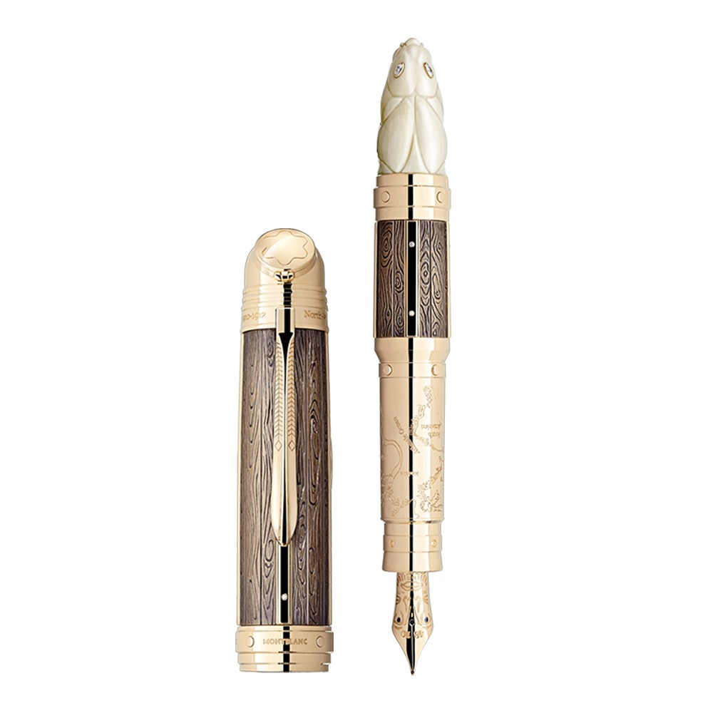 | Nib | The Au750 solid gold nib has an engraving of an Inuit face tattoo. Set with 2 sapphires (~0,009 ct.). |