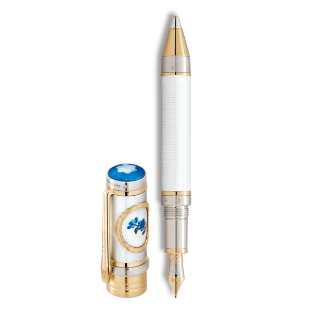 Great artists throughout history have expressed the human experience in a universal language of form and beauty. The Montblanc Masters of Art Collection honors their eternal contribution to the quest for perfection in art – a quest Montblanc both celebrates and participates in. Pierre-Auguste Renoir is one of the most prominent forerunners of modernism, whose sun-drenched paintings helped set the tone for an entire movement: Impressionism. In tribute to this pioneer of French art and his beginnings as a porcelain painter, Montblanc has created the Masters of Art Homage to Pierre-Auguste Renoir Limited Edition 888. The virtuosity with which Renoir applied paint had its origins in his apprenticeship as a porcelain painter, begun at the age of 13 in the Lévy brothers’ Paris factory. He mastered the art of painting delicate floral designs that marry subtle shades of blue with pure white porcelain, each brushstroke echoing the beauty of nature. One of the few remaining examples of Renoir’s porcelain painting inspired the design of the Limited Edition 888. Cap and barrel are coated in a special lacquer to evoke the appearance of fine white porcelain. The translucent lacquer reveals a delicate engraved Louis XVI pattern underneath, as found on pieces by silversmiths of that period. The eye is drawn in particular to the gold-framed lacquer motif on the cap, showing a reproduction of a flower motif as painted by Renoir. The cap top is adorned with a mother-of-pearl Montblanc emblem encircled by various shades of blue, which is also a reminder of Renoir’s porcelain painting. The platinum-coated cap top ring bears the engraving 1854, the year in which Renoir began his apprenticeship as a porcelain painter. An eye-catching feature is the gold-coated clip formed like two brushes of the type used by Renoir to produce both the fine details as well as the more expansive surfaces that made up his masterpieces. The wide, solid Au 750 gold lower cap top ring rounds off the design of the cap. The delicate folding fan with two tassels that adorns the handcrafted, partly-rhodium-coated solid Au 750 gold nib is a tribute to the significance of a fan, an accessory which is featured in a lot of his works, especially in many of his perceptive portraits of women. As a tribute to Renoir’s drawing skills, a silverpoint tip made of soft Ag 925 sterling silver is integrated into the solid Au 750 gold, partly platinum-coated cone, providing the means to create silverpoint sketches of one's own.