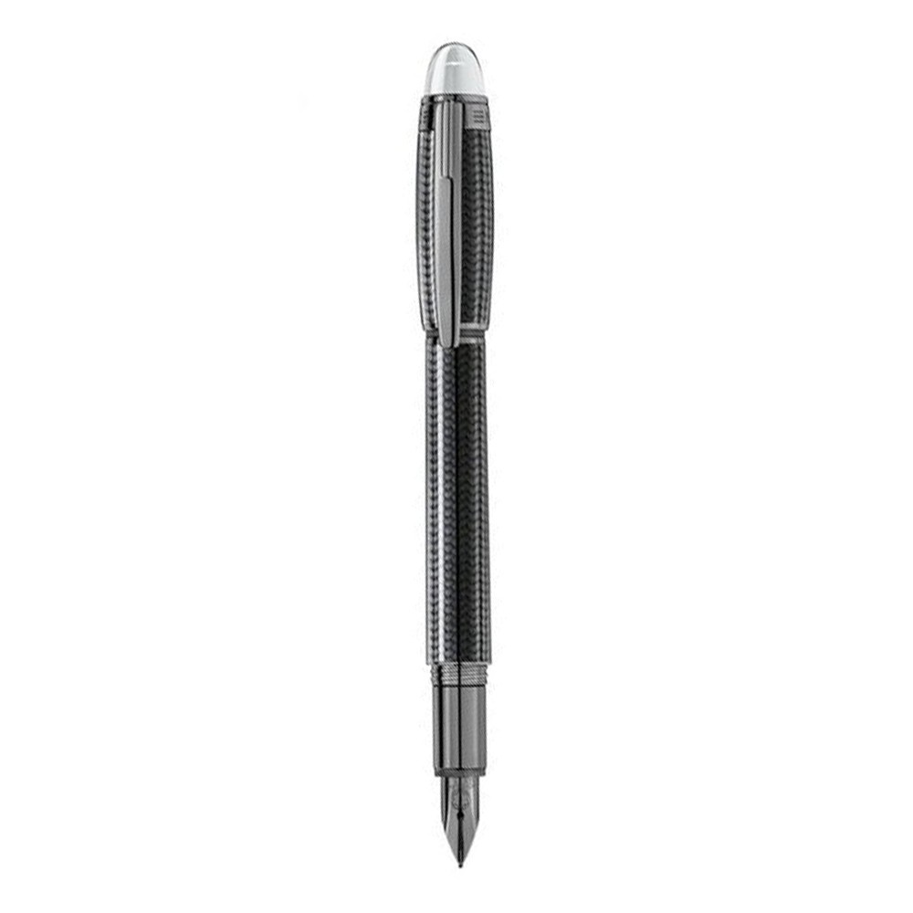 Montblanc’s StarWalker Ultimate Carbon Fiber Fountain Pen features a grey carbon fiber cap and barrel decorated with a subtle geometric pattern, in a statement of ingenious and ergonomic design. The use of carbon in a material finely woven of thousands of fibers, delivers a light yet robust writing instrument. The polished platinum-plated cap and fittings deliver additional refinement to this version, and clearly set the cap and barrel apart from each other with a contrast in color and materials. A light finish on the surface of each piece protects it from the damage of everyday use. The Au585 gold nib (14K), the very soul of the writing instrument, is also plated with ruthenium and engraved with the Montblanc emblem.