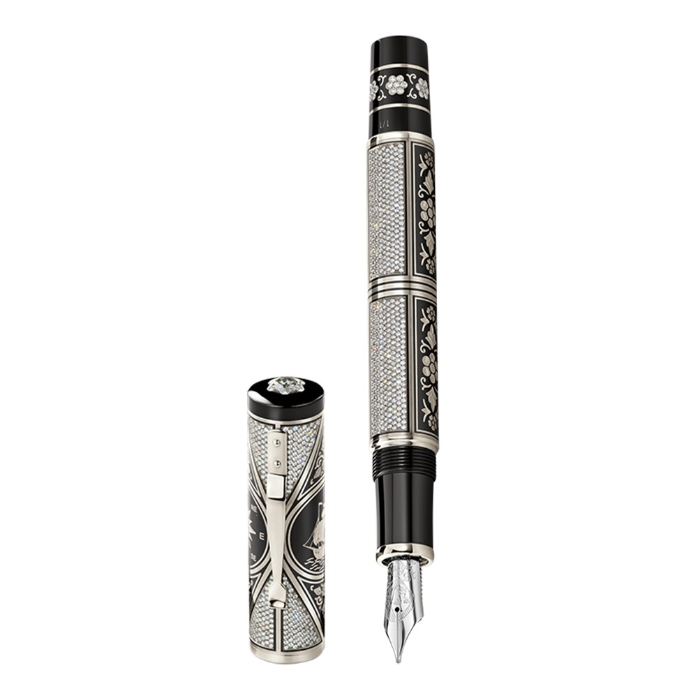 | Nib | The rhodium-coated Au750 solid gold nib is decorated with an engraved face of Colón, the visionary voyager. |